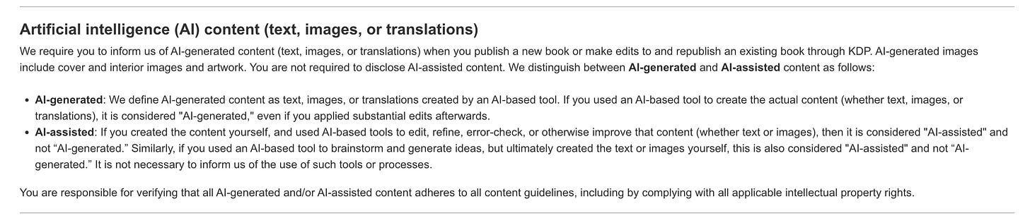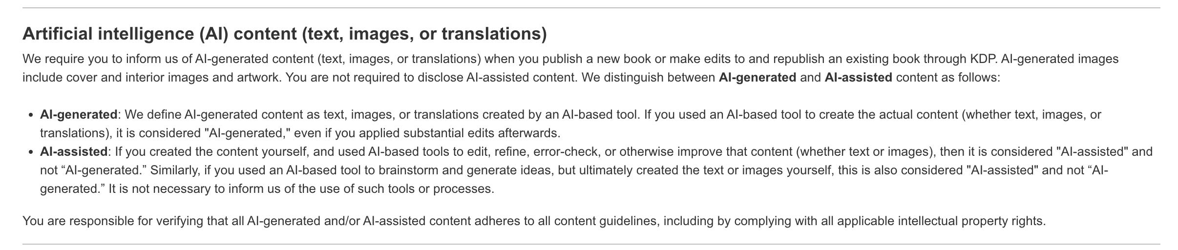 As a self-published author on Amazon KDP, are you aware of the rules and guidelines for AI-generated or assisted content?